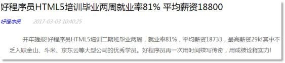 类似这样的真相我能给你粘到2018年。特别清楚的记得千锋HTML5好程序员2班结业的盛况,猎头们蜂拥而至,拿到我们学员简历,两眼都放绿光,真真实实让我感受了一把企业对高端人才的求贤若渴啊,那是真渴啊。